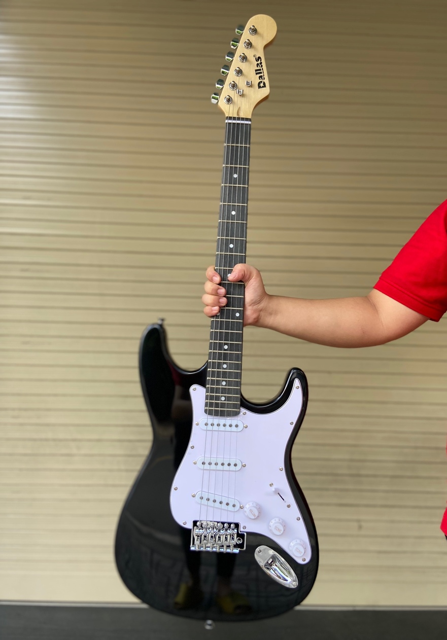 Đàn guitar điện Dallas được sản xuất từ gỗ tự nhiên, sử dụng những loại gỗ quý, qua xử lý kỹ càng đảm bảo độ bền bỉ và sự vững chắc lâu dài. Nước sơn bóng không hề bị bong tróc; sử dụng khóa kim loại với 6 dây sắt cũng, gồm 3 mobin và đàn có nhiều màu sắc khác nhau như đen, xanh, đỏ, hoàng hôn.