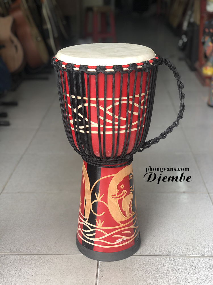 Trống vỗ tay Châu Phi Djembe độc đáo với nhiều màu sắc, hoa văn. Sản phẩm được làm bằng chất liệu gỗ gụ nguyên khối. Cách trang trí bên ngoài độc đáo với nhiều màu sắc đa dạng. Mặt trống được căng bằng da dê trắng tạo âm thanh tuyệt vời. Trống vỗ tay châu phi thích hợp với việc biểu diễn, vui chơi trong, ngoài trời, biểu diễn trên sân khấu hay dã ngoại đều được.